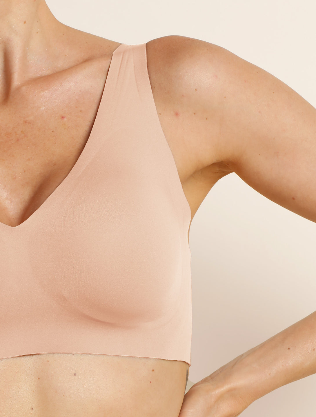Comfelie BHs ohne Bügel bestehen zu bis zu 43% aus Spandex – weit mehr als der Branchenstandard von 15%. Das sorgt für außergewöhnliche Elastizität, Formbeständigkeit und Komfort. Das ist das Geheimnis hinter unserem ultra-bequemen Tragegefühl.