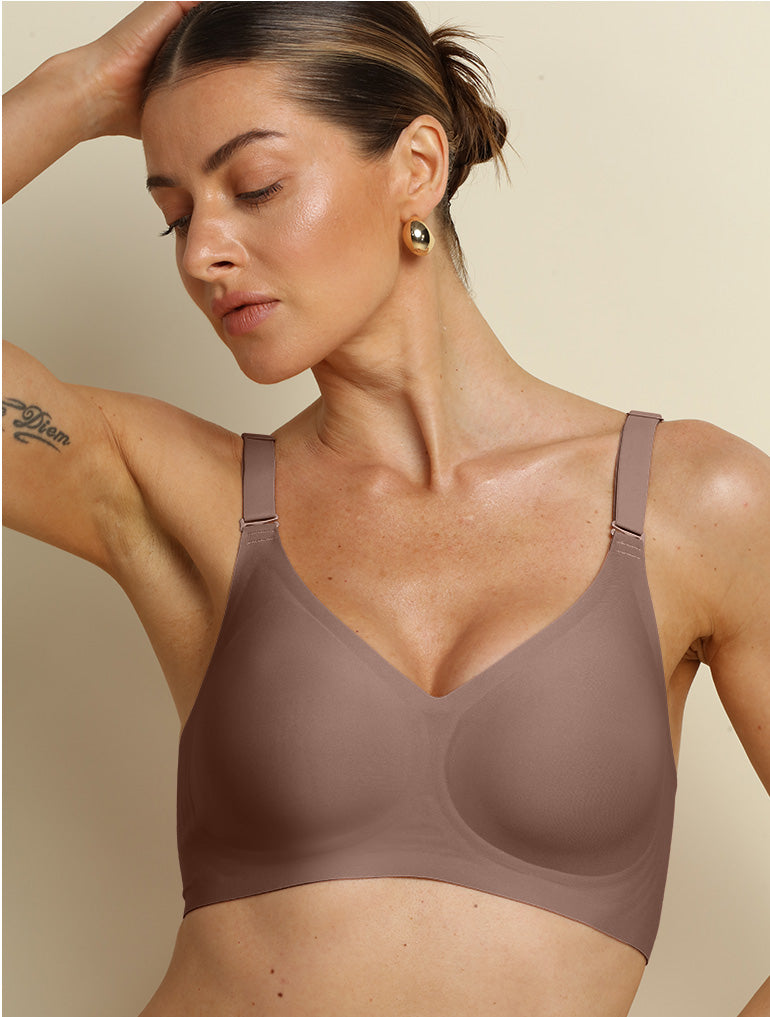 Comfelie BHs ohne Bügel bestehen zu bis zu 43% aus Spandex – weit mehr als der Branchenstandard von 15%. Das sorgt für außergewöhnliche Elastizität, Formbeständigkeit und Komfort. Das ist das Geheimnis hinter unserem ultra-bequemen Tragegefühl.
